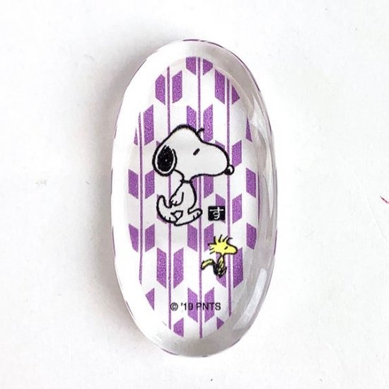オーバルフォルムのアクリル樹脂製の箸置き。ガラス風の透明感が高くて、アクリルなので割れづらいといういいとこ取り。スヌーピーのデザインが描かれています。麻の花が背景にデザインされていて、和テイストな仕上がり♪