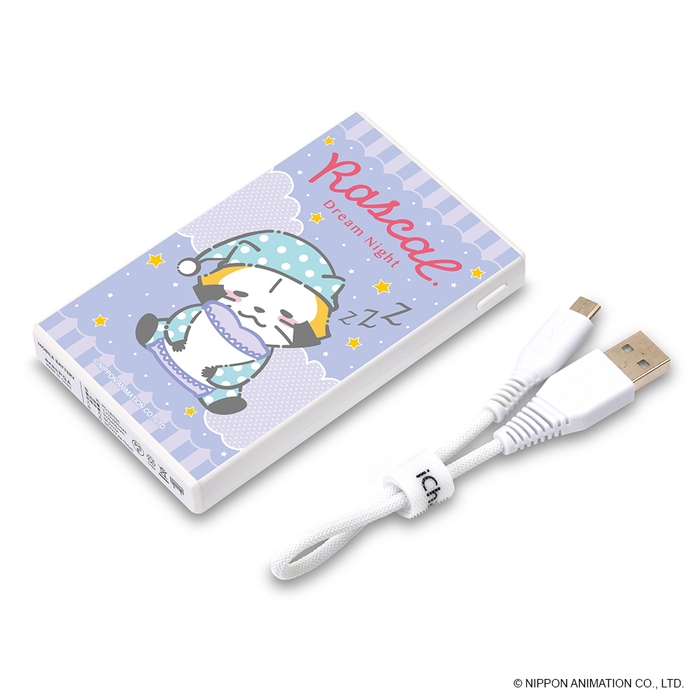 「ラスカル」デザインの5000mAhリチウムバッテリーです。いつでもどこでもスマートフォンやタブレットを充電できます。コンパクトサイズで持ち運びやすい軽量・薄型バッテリー。micro USBケーブルが付属しています。