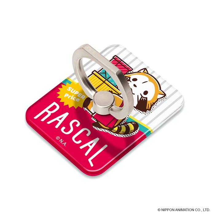 「ラスカル」デザインのスマートフォンリングホルダーです。スマートフォン本体やケースの背面に貼り付けることで、端末の持ちやすさがアップ。落下防止の役割も果たしてくれます。360度回転するリングは動画視聴などに便利なスタンドとして使用も可能です。