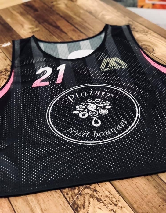 この度コラボレーションとして、フルーツブーケ専門店プレジールのロゴが入った、千葉明徳高等学校サッカー部女子の新しいビブスが完成しました。