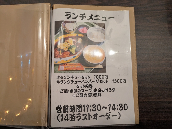 さらに驚くのは、そのクオリティを**「牛タンシチューランチライスセット(サラダ・スープ付き)」で、なんと1,000円**という手頃な価格で提供していること。