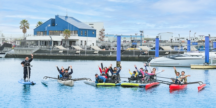 「HOBIE(ホビー)」は、アメリカ発祥のウォータースポーツブランドで、足漕ぎで進む独自のペダルシステムが特長です。両手が自由になることで、写真撮影やドリンクも楽しめる“新しい水上体験”が可能です。
