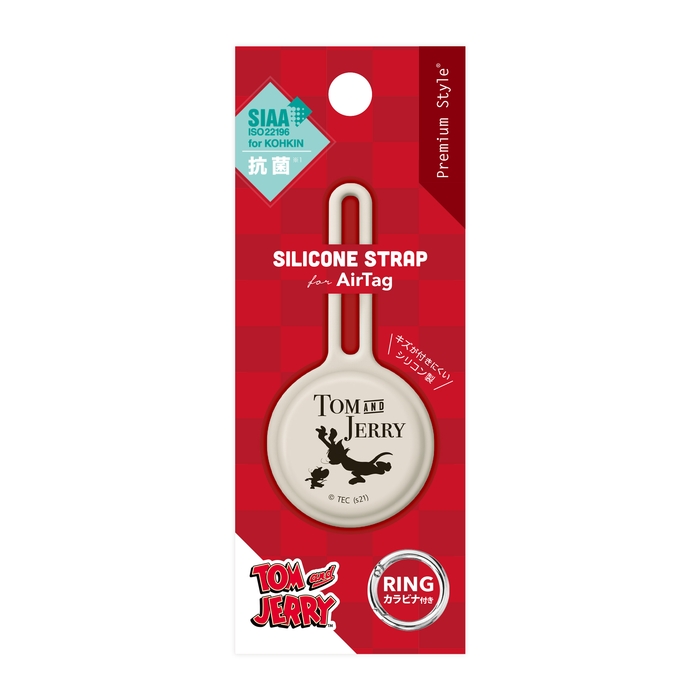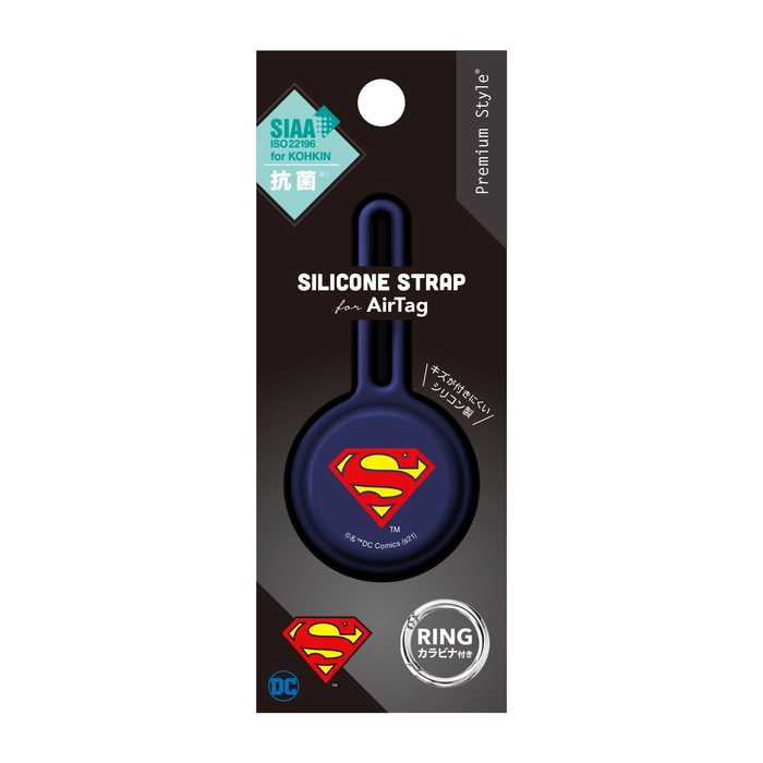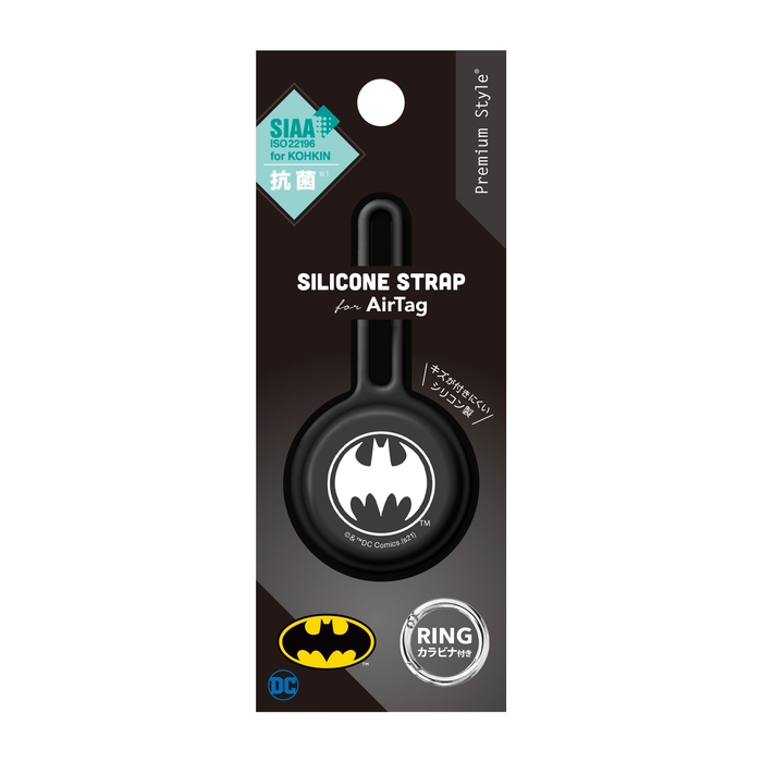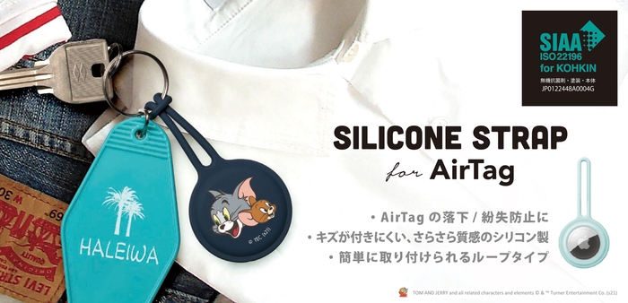 「トムとジェリー」・「バットマン」・「スーパーマン」デザインの柔らかなシリコン素材を使用したAirTag用の抗菌シリコンストラップです。柔軟なシリコン素材でAirTagをキズから守ります。バッグの金具やキーチェーンにストラップを通して結びつけるループタイプで取り付けが簡単。シリコン部分にSIAA(抗菌製品技術協議会)規格準拠の抗菌加工が施されAirTag本体を細菌から守り、清潔に保ちます。また、シリコン特有のベタつきを抑え肌ざわりのよいさらさらとした質感の加工を施しております。ストラップを通しづらい場所にも取り付けられるカラビナリング付き。
