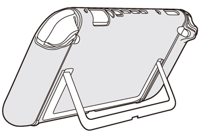 他にも、ゲームカードの交換、背面スタンドの使用、充電ケーブルやイヤホンの接続など、様々な操作が可能。別売の弊社製ポーチに収納することもできます。