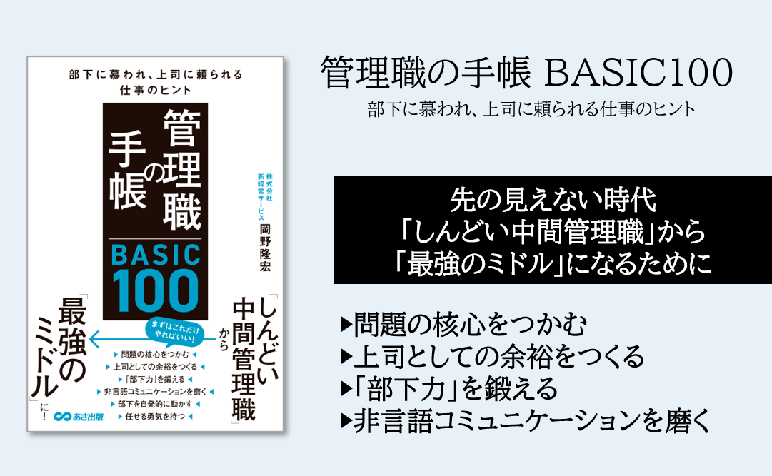 【先の見えない時代「しんどい中間管理職」から「最強のミドル」になるために】 岡野隆宏 著『管理職の手帳 BASIC100 部下に慕われ、上司に頼られる仕事のヒント』2024年10月8日刊行