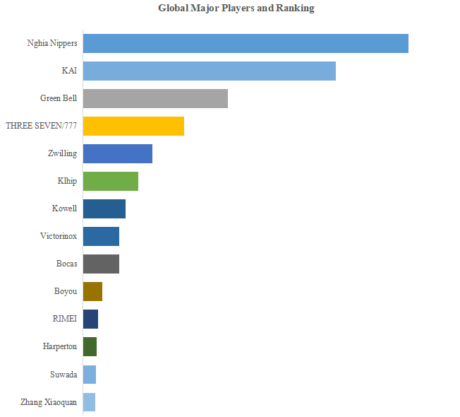 QYResearchのトップ企業研究センターによると、爪切り(ペンチ)の世界的な主要製造業者には、Nghia Nippers、KAI、Green Bell、THREE SEVEN/777、Zwilling、Klhip、Kowell、Victorinox、Bocas、Boyouなどが含まれている。2023年、世界のトップ5企業は売上の観点から約21.0%の市場シェアを持っていた。