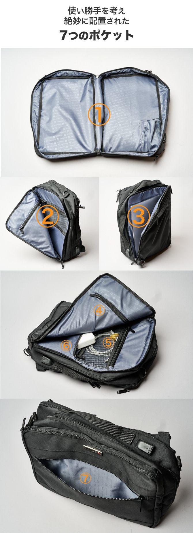 - TPOに合わせて「ブリーフケース」「ショルダー」「バックパック」と3Wayの使い勝手