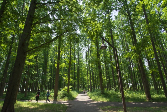 水元公園は入場無料、常時開園の開放公園です。小合溜に沿って造られた、都内で唯一水郷の景観をもった公園で、昭和50年まで、このあたりは都立江戸川水郷自然公園に指定されていました。 小合溜から引いた大小の水路が園内を走り、水郷景観を作りだしています。園内にはポプラ並木やメタセコイアの森、ハンノキなど水辺に強い樹木が生育し、ハナショウブ、スイレン、コウホネといった水生植物を多く見ることができます。