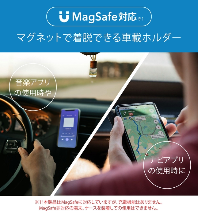 MagSafeに対応したiPhoneを容易に着脱できるカーエアコンの吹き出し口(ルーバー)に取り付け可能な車載用マグネットホルダーを株式会社PGAが5月20日より発売