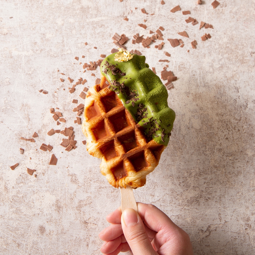 発酵バターが入ったオリジナルのクロワッサン生地をワッフルマシンで焼き上げたクロッフルは、外はサクサクッ!