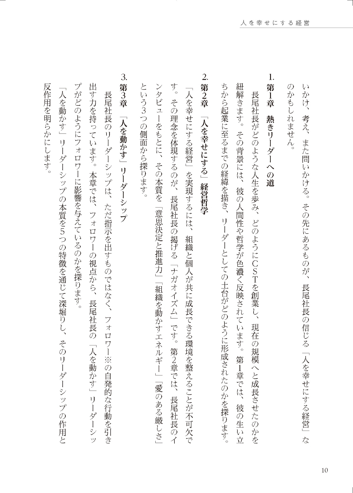 本書は、株式会社コンピュータシステム研究所(CST)代表・長尾良幸氏の40年にわたる経営実践を、「360度リーダーシップ分析」という独自手法で描いた経営書です。