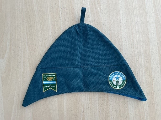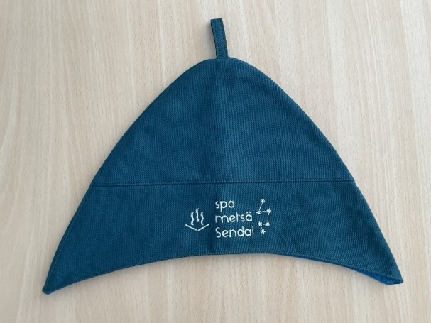 耳までしっかり覆う形状で、サウナをより快適に楽しめます。熱い蒸気から頭部を保護し、のぼせや髪へのダメージを軽減するだけでなく、耳もしっかりカバーするので、「独眼竜ロウリュ」にも対応。正面にはスパメッツァ仙台のロゴ、背面にはマイナビ仙台レディースのエンブレムと公式マスコット「マイビィ」が温泉に入っている可愛らしい刺繍が施されています。