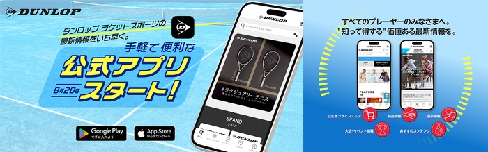 住友ゴムグループの(株)ダンロップスポーツマーケティング(社長:木越 浩文)は、ダンロップラケットスポーツのウェブサイト「ダンロップテニスナビ(https://sports.dunlop.co.jp/tennis/)」と「ダンロップスポーツ公式オンラインストア(https://d-sports-online.dunlop.co.jp/racketsports.html)」をスマートフォンで手軽に閲覧できる「ダンロップラケットスポーツ公式アプリ」の提供を2024年8月20日から開始します※。