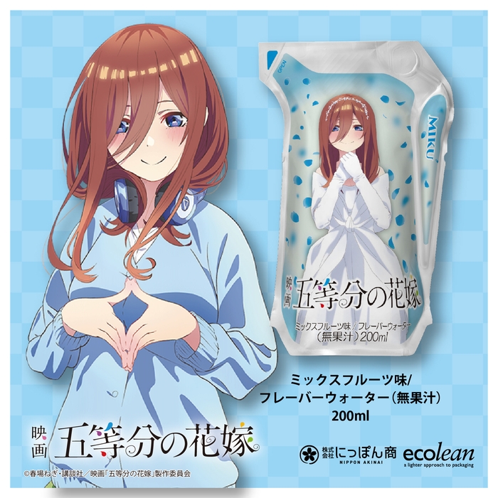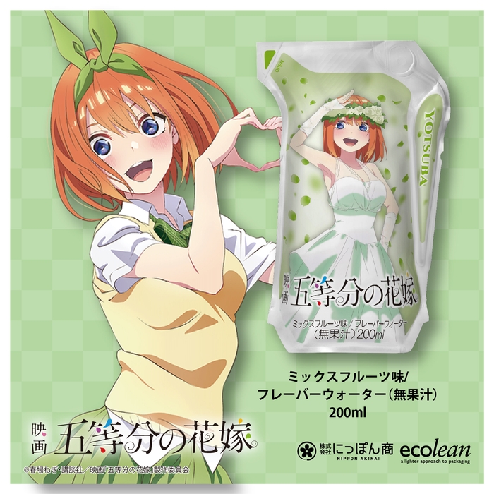 今回、『RADIOEVA(ラヂオエヴァ)』に引き続きアニメコラボ第2弾として、現在大ヒット上映中の映画『五等分の花嫁』をパッケージに使用した新ラインナップを発売します。それにより、環境問題について考える第一歩として、Reduce、Reuse、Recycleの3Rを実現する契機にしたいと考えております。
