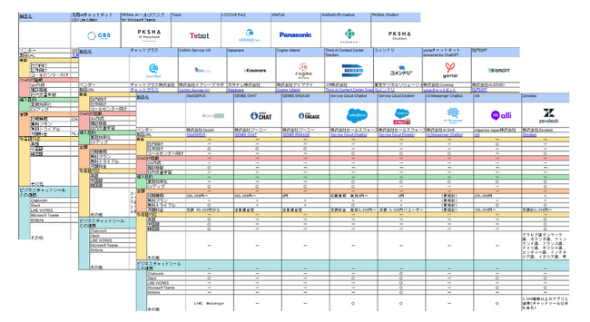 作成にあたり参考にしたサービスURLと大サイズの早見表(Excel)は、早見表を資料請求された方でチャットボットの導入を検討している企業ご担当者に対し無償でご案内いたします。