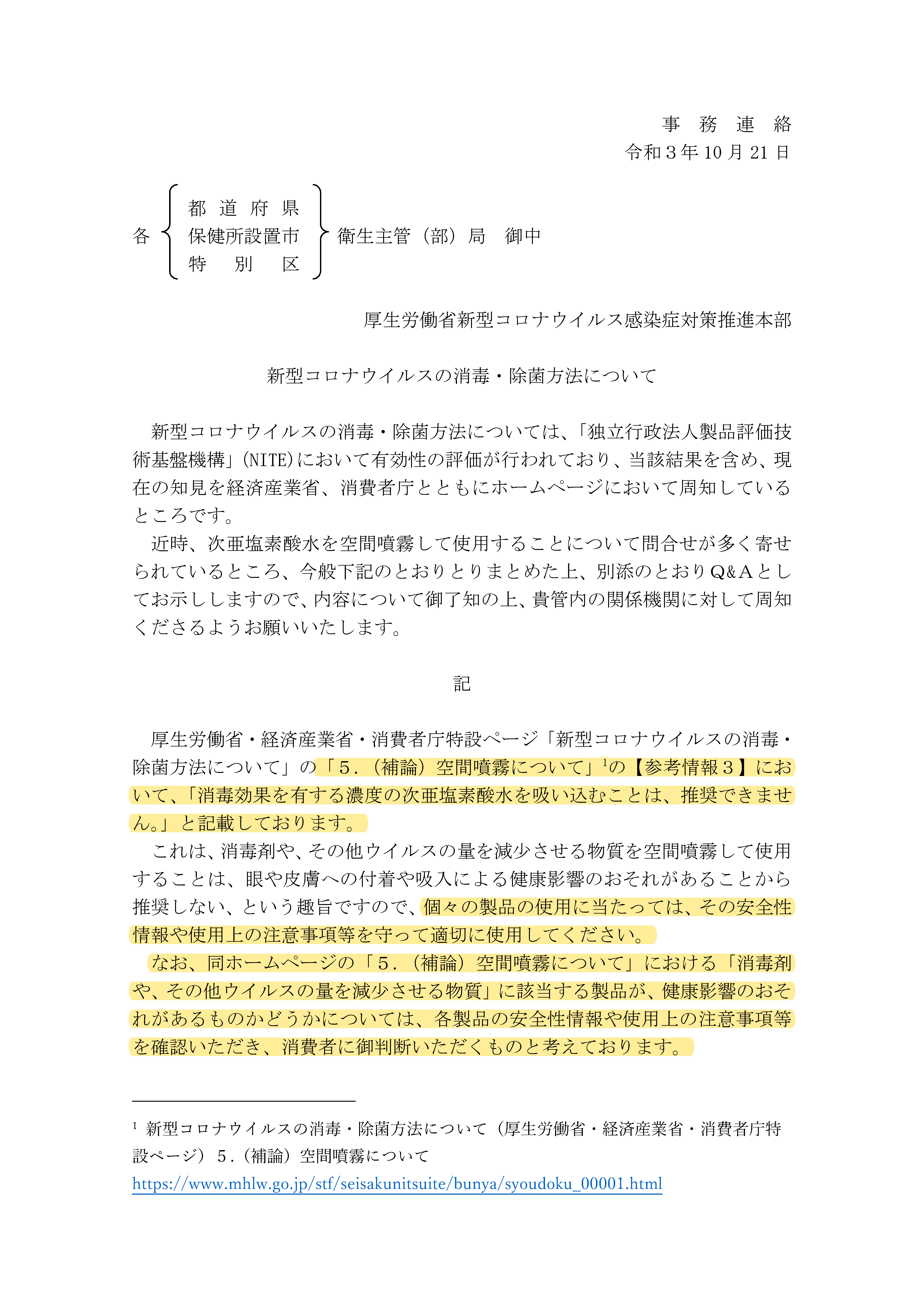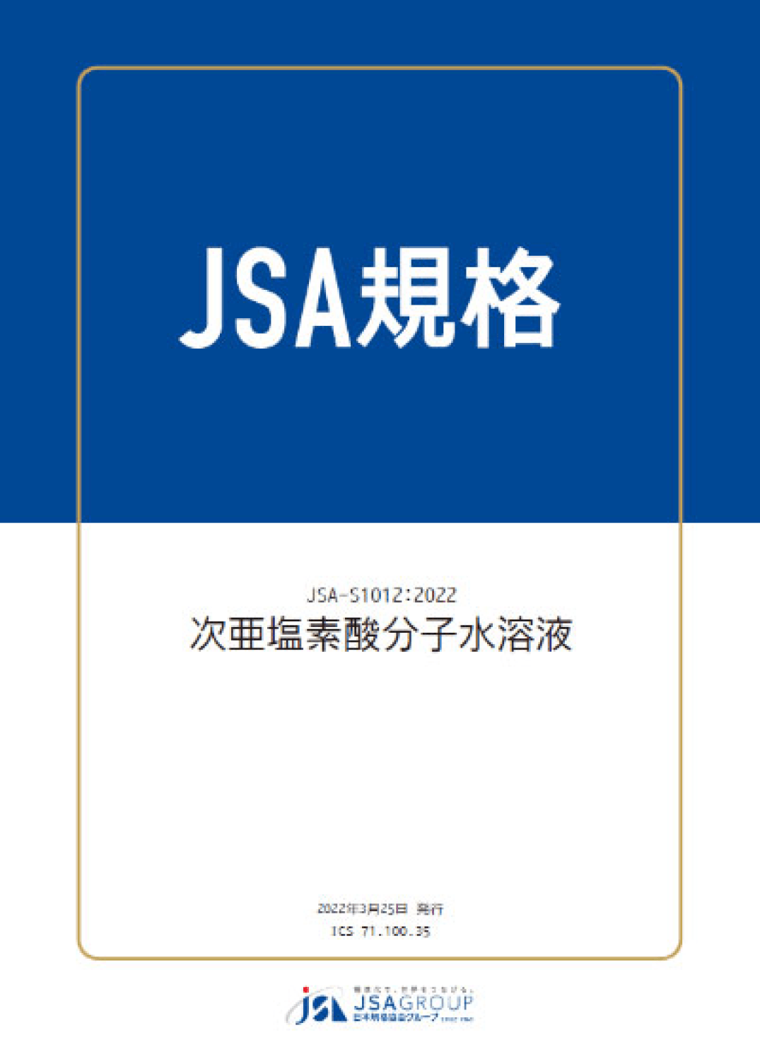 - JSA標準規格「JSA-S1012:2022:次亜塩素酸分子水溶液」の推奨