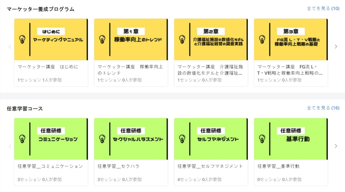 稼働率アップ、収益改善、人材採用・定着・育成など、施設マネジメント業務の内容が20カテゴリ―600個の動画がいつでも見放題!使用されている事例もダウンロードし、明日から実践できるツールも備わっています。経験の浅い施設長・管理者や新任園長でもマネジメントレベルを引き上げることができます。また、各機能が連携するため、業務の効率化にもつながります。