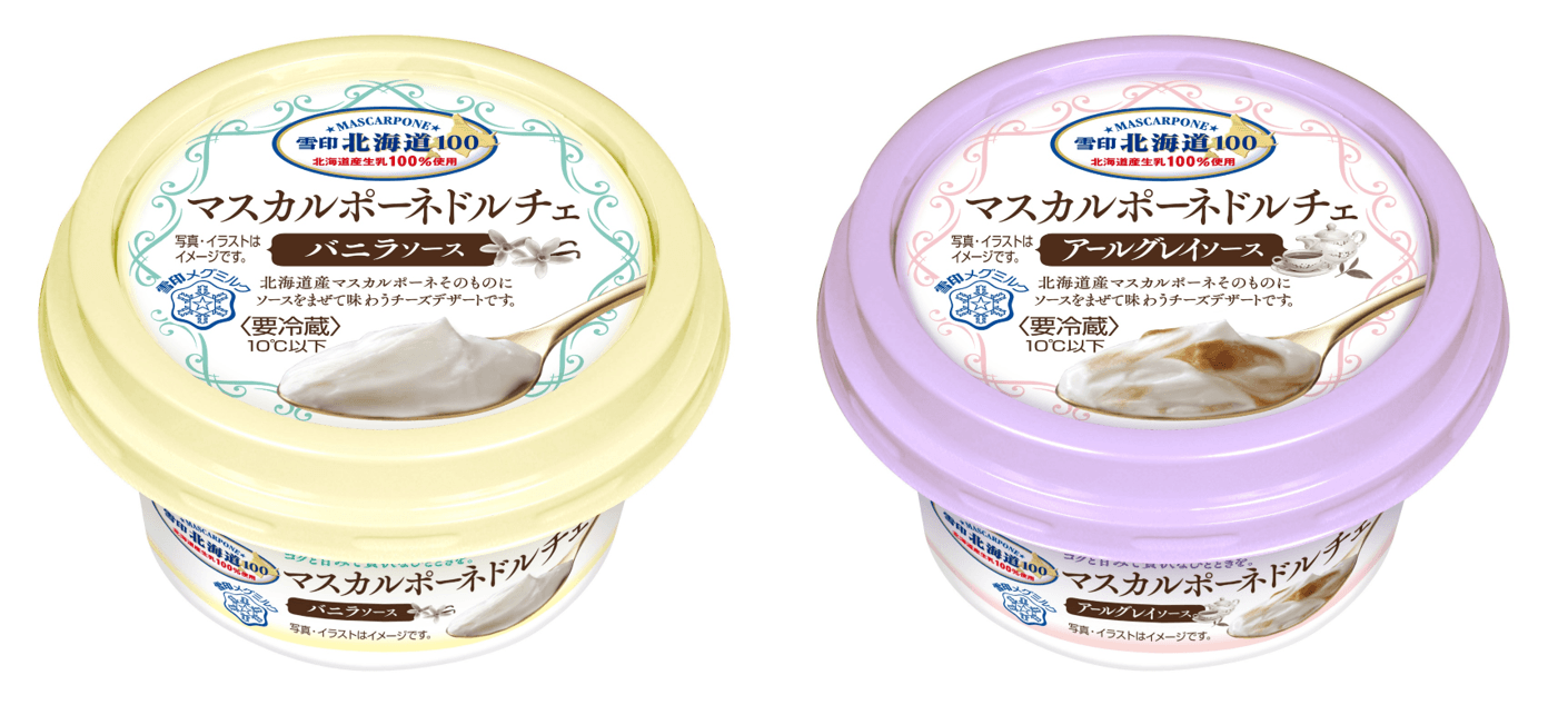 左:『雪印北海道100 マスカルポーネドルチェ バニラソース』(100g)