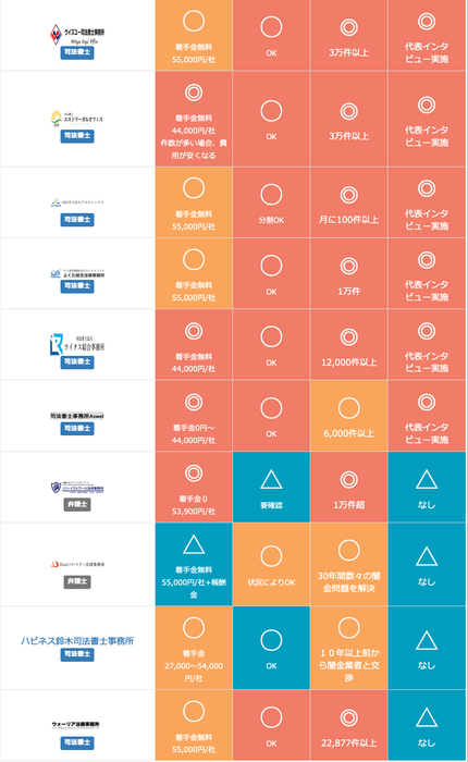 闇金への対応実績・経験を重視しつつ、闇金解決費用、代表の人柄や事務所の雰囲気等が判断できるインタビュー記事、口コミも参考に10つの事務所をおすすめしています。