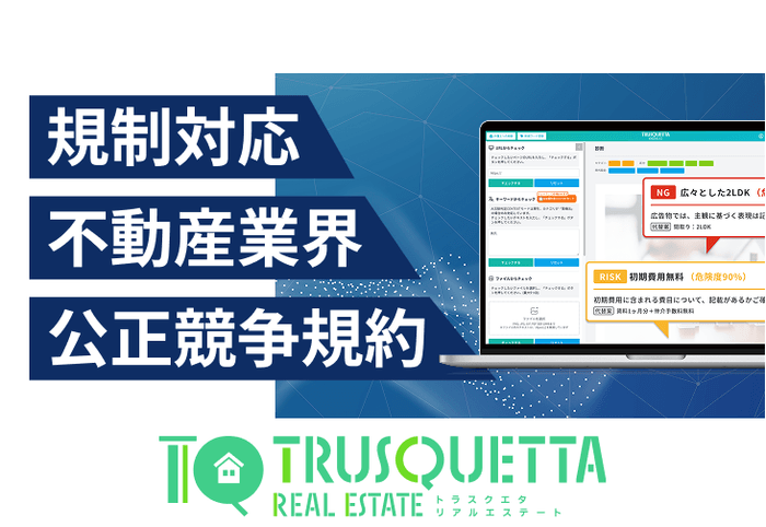 株式会社トラスクエタ(本社:東京都渋谷区、代表取締役CEO:高橋 聡)は、広告表現チェックツール「TRUSQUETTA」シリーズの不動産業界特化ライン『TRUSQUETTA REALESTATE(トラスクエタ リアルエステート)』を開発しました。建設・不動産業界で特に課題となっている広告・販促資料の確認作業を、AIの力で劇的に効率化します。