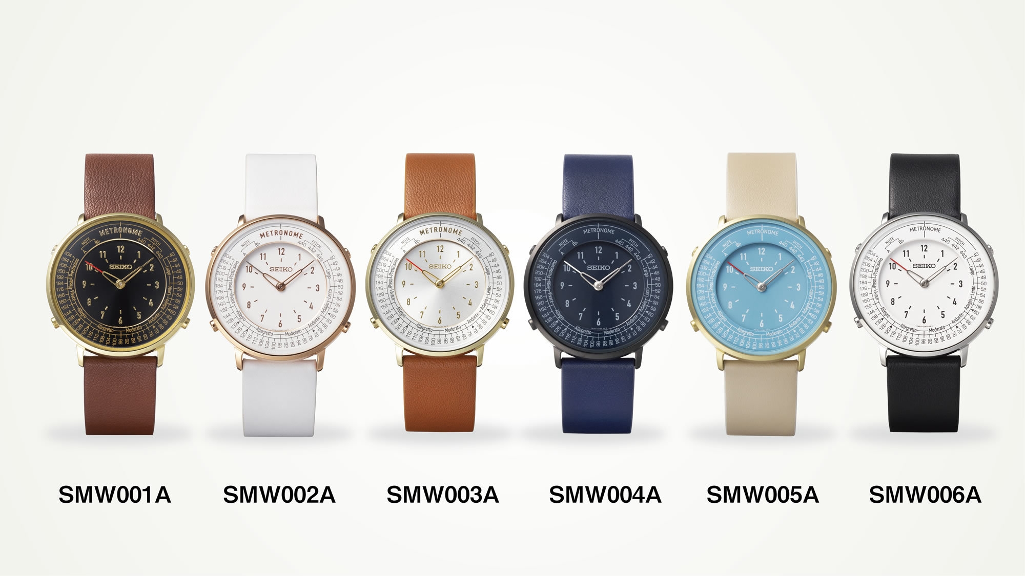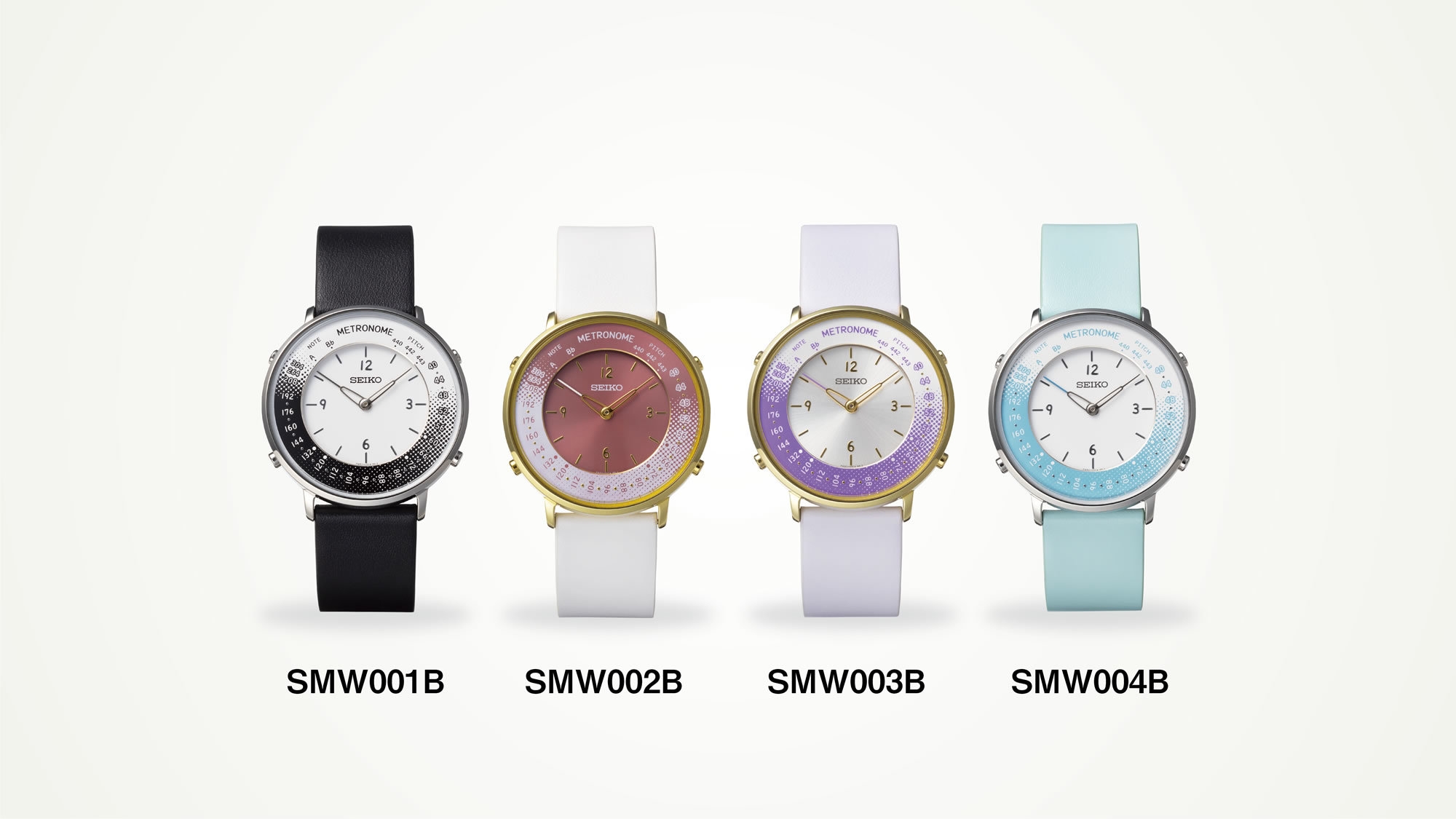 デザインはスタンダードとカジュアルの2つのラインで、スタンダードは落ち着きのあるワンカラーのダイヤルに、メトロノームの拍数を緻密に並べた機能的なデザインとなっています。一方、カジュアルは明るくポップなカラーで、テンポの変化をドットで表現し遊び心のあるデザインとなっています。どちらもケースサイズは、横: 36.5 mm/縦: 39.6 mmと扱いやすいサイズとなっており、男女問わずお使いいただけます。