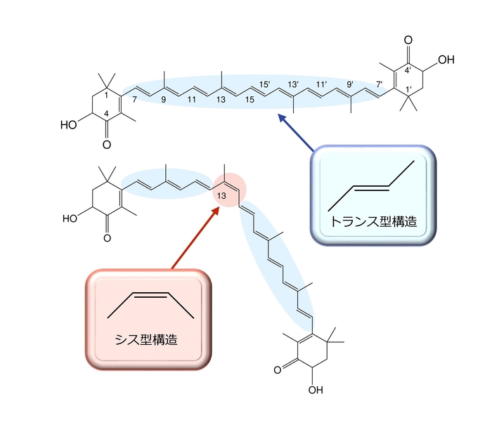 分子鎖の二重結合の一箇所以上がシス型であるカロテノイド。詳細なメカニズムは不明であるが、一部のカロテノイド(リコピン、アスタキサンチンなど)において、トランス型を摂取してもヒト体内ではシス型が豊富に検出される。また、近年の研究により、トランス型よりシス型の方が、体内吸収性や一部の生理活性(抗老化作用や抗炎症作用、肌質改善作用など)が高いことが示された。加えて、シス型カロテノイドは結晶性が低く、油脂への溶解度も高いことから、トランス型より加工適性に優れる。しかしシス型は、太陽光や蛍光灯などの日常の光で容易にトランス型に変性してしまうことが問題となっている。