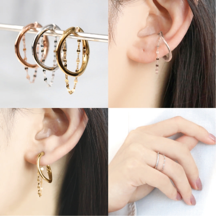 リング・イヤカフ・イヤリングと使い分けられる3WAYジュエリー