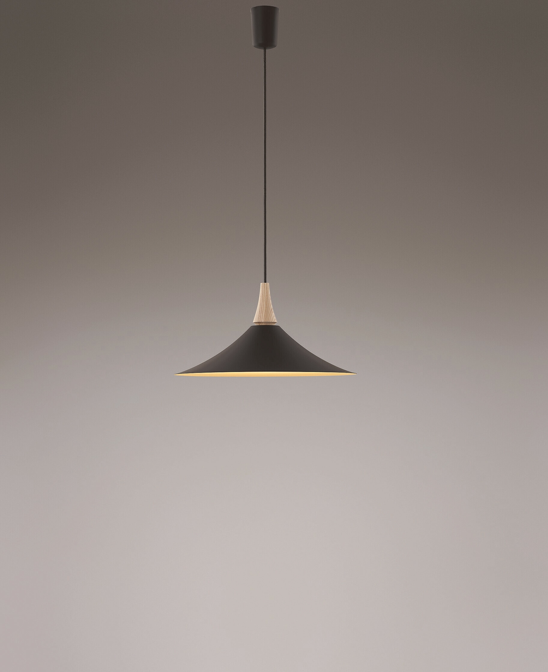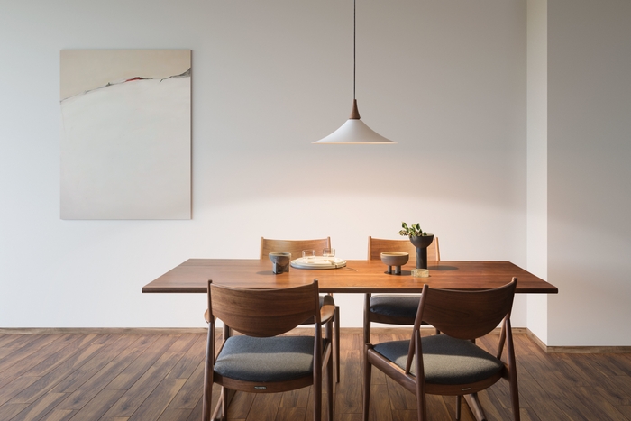 無垢の木飾りとセードだけのシンプルなデザインで、空間に温かみを与える北欧テイストの大ぶりペンダントライトを6機種ラインアップいたしました。セードの柔らかい曲面に沿って美しい光が広がる設計で、コード部分は、ブラックとグレーの糸を編み込んだ温かみの感じられるデザインを採用することで、従来のコードよりも北欧風なインテリアに調和します。空間のベースカラーや家具に合わせて選べるように色温度は、2色(2700K電球色/3500K温白色)、本体カラーを3種類(ウォールナット×マットファインホワイト/ホワイトアッシュ×マットファインホワイト/ホワイトアッシュ×マットブラック)取り揃え、お好みの北欧テイストの空間を演出します。