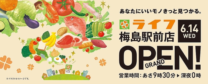 “おいしい” “ワクワク” “ハッピー” をお届けするライフコーポレーションは、「ライフ梅島駅前店」を6月14日(水)にグランドオープンいたします。