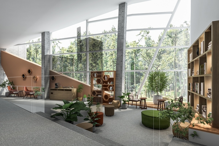 まるで森の中にいるかのようなインテリアに囲まれたライブラリー& ラウンジでは、様々な植物の命をつなぐミツバチの自然のちからからインスパイアを受けたウェルカムフード& ドリンクをお愉しみいただけます。