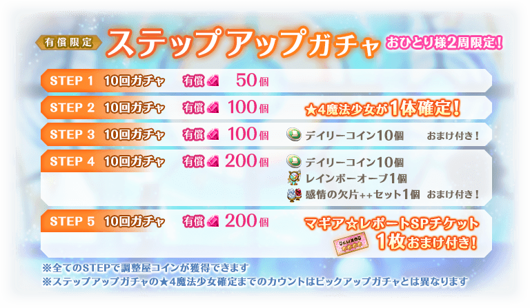 ※STEP2での★4魔法少女について、ピックアップ対象の魔法少女が確定するわけではございません。