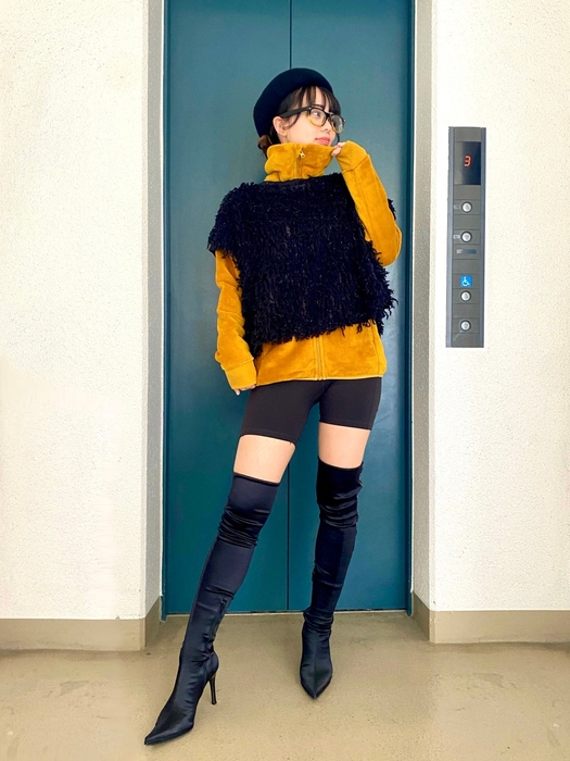 スタイリング写真(キーアイテム:ハイネックTシャツ)