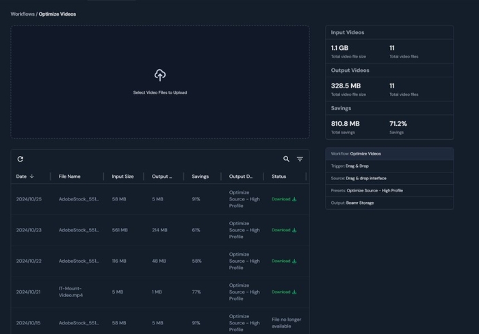 「Beamrクラウド」は、ビデオの視覚的品質を変えずに、そのファイルサイズを自動で30%から50%程度に小さくすることができるクラウドサービスで、ビーマー社独自のコンテンツアダプティブビットレート(CABR)技術によって実現されています。CABRは、13年にわたる研究開発の成果であり、2021年には「テクノロジー&エンジニアリング・エミー賞」を受賞しています。本サービスは、動画ファイルのサイズやコストを大幅に削減しつつ、オリジナルのすべてのピクセル、すべての色、すべての動き、を維持することを目標としており、あたかも映像の専門家が1フレーム1フレームを検証したかのような最適化を全自動で行います。視覚的品質を変えずにファイルサイズを軽量化することで、クラウドストレージやネットワーク帯域、CDNのコストを削減することが可能です。
