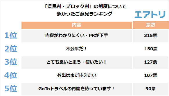 ●「県民割・ブロック割」の制度について多かったご意見ランキング