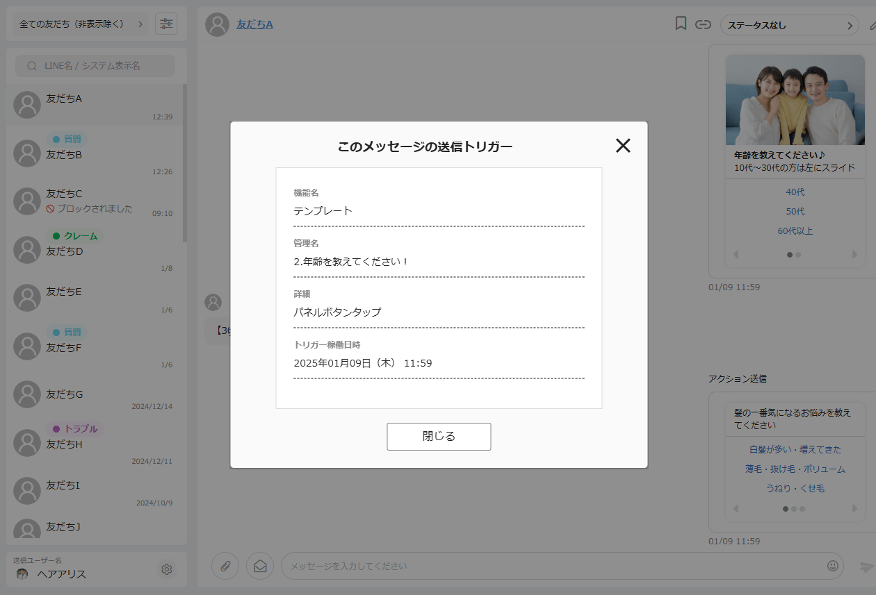 メッセージがどのようなアクションをきっかけに送信されたのかを確認できるようになり、自動配信の管理がより確実になりました。