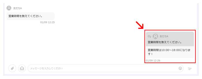 友だちからのメッセージを引用して返信できるようになり、どの質問に対する回答なのかが明確になります。