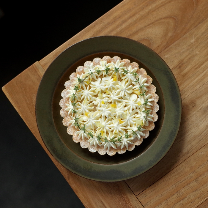 季節限定の新メニュー「レモンのホールタルト」も6月中旬より販売を開始。お一人サイズとしては大きな直径12cmのタルト台にレモンの果汁と果肉をたっぷりと使ったレモンカードをのせて、爽やかな酸味を感じるフロスティングで仕上げました。さっぱりとしたものを口にしたい梅雨の時期にぴったりなデザートです。