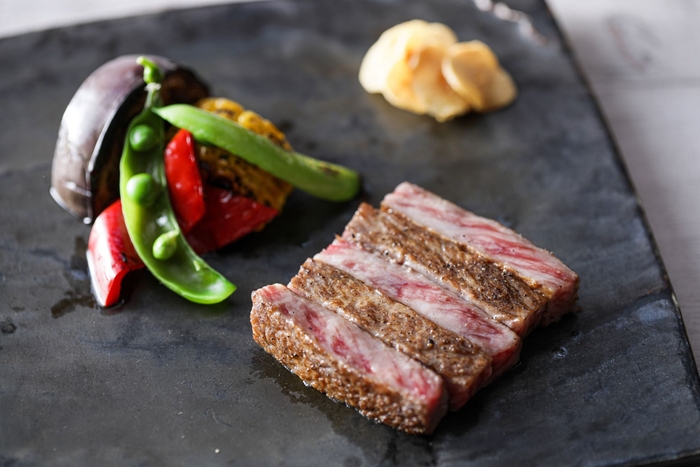 ・肉料理:十勝産厳選黒毛和牛の食べ比べ フィレ40g/ロース50g