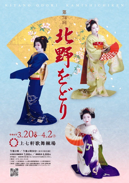 上七軒歌舞会(上七軒お茶屋協同組合・上七軒芸妓組合)主催、『第74回 北野をどり』が2026年3月20日(金・祝)~4月2日(木)に上七軒歌舞練場(京都府京都市上京区今出川通七本松西入真盛町742)にて上演されます。