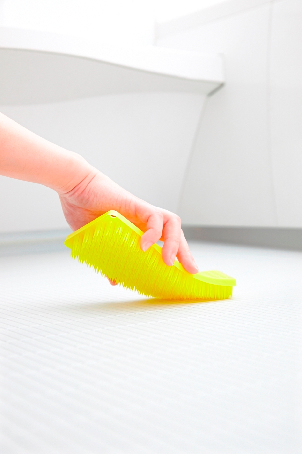 床洗い用のプラスチック性タワシです。尖った毛先がタイルのすき間や水はけ用の凸凹の間の汚れをかき出します。柔らかく手にフィットするため、力を入れてこすり洗いできます。