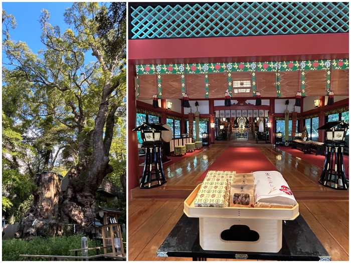 大麦を炒ってから挽いた粉のこと。來宮神社の神様への特別なお供え物で、夏の例大祭で神様の先導役である猿田彦命(さるたひこのみこと)が振りまく麦こがしがかかると、災いを祓い、健康長寿のご利益が得られるという言い伝えがあり、熱海に所縁の深い縁起物とされています。