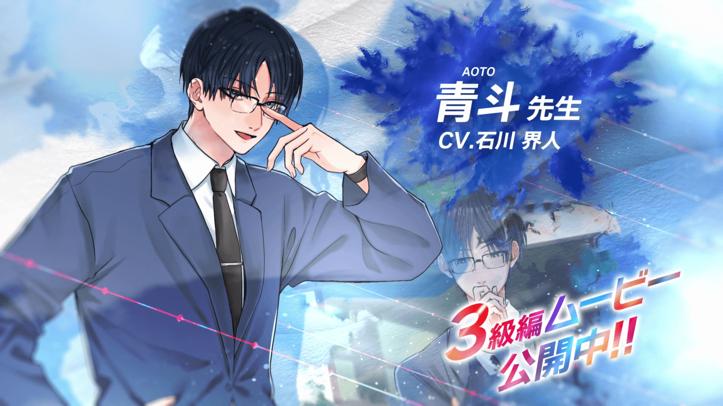 ティザームービーには、これまで講義をしてきた石川界人さん、内田雄馬さん、梅原裕一郎さん、江口拓也さん、梶裕貴さん、下野紘さん、諏訪部順一さんの7名と、前作に続き本編に登場する木村良平さん、斉藤壮馬さん、杉田智和さんの計10名による個性豊かなイケボ講師陣も登場。これから勉強をはじめる生徒を良い声で授業に誘います。