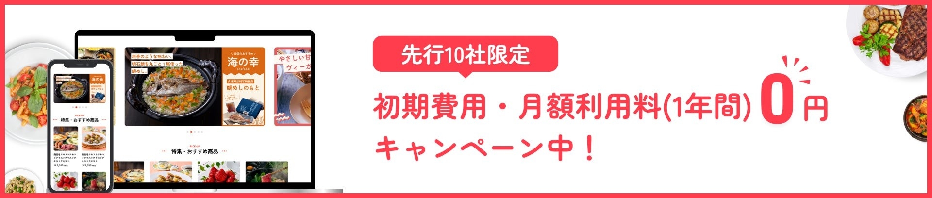 | おまかせECマルシェ(システム代) | 初期費用0円 + 月額利用料(1年間)0円 ※キャンペーン適用料金 |