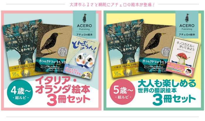 海外絵本を翻訳・刊行する出版社、アチェロ(所在地:滋賀県大津市、代表:田村由記子)の絵本セットが、このたび滋賀県大津市のふるさと納税返礼品に加わりました。