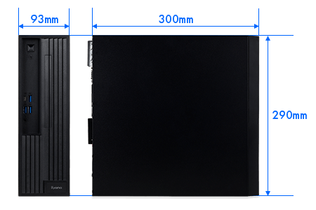 筐体サイズ(突起物除く)は、幅93mm × 奥行300mm × 高さ290mmと、スリム設計でありながら、高いパフォーマンスを発揮します。