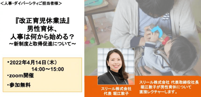 【人事向け無料セミナー】4/14(木)男性育休、人事は何から始める?~新制度と取得促進について~