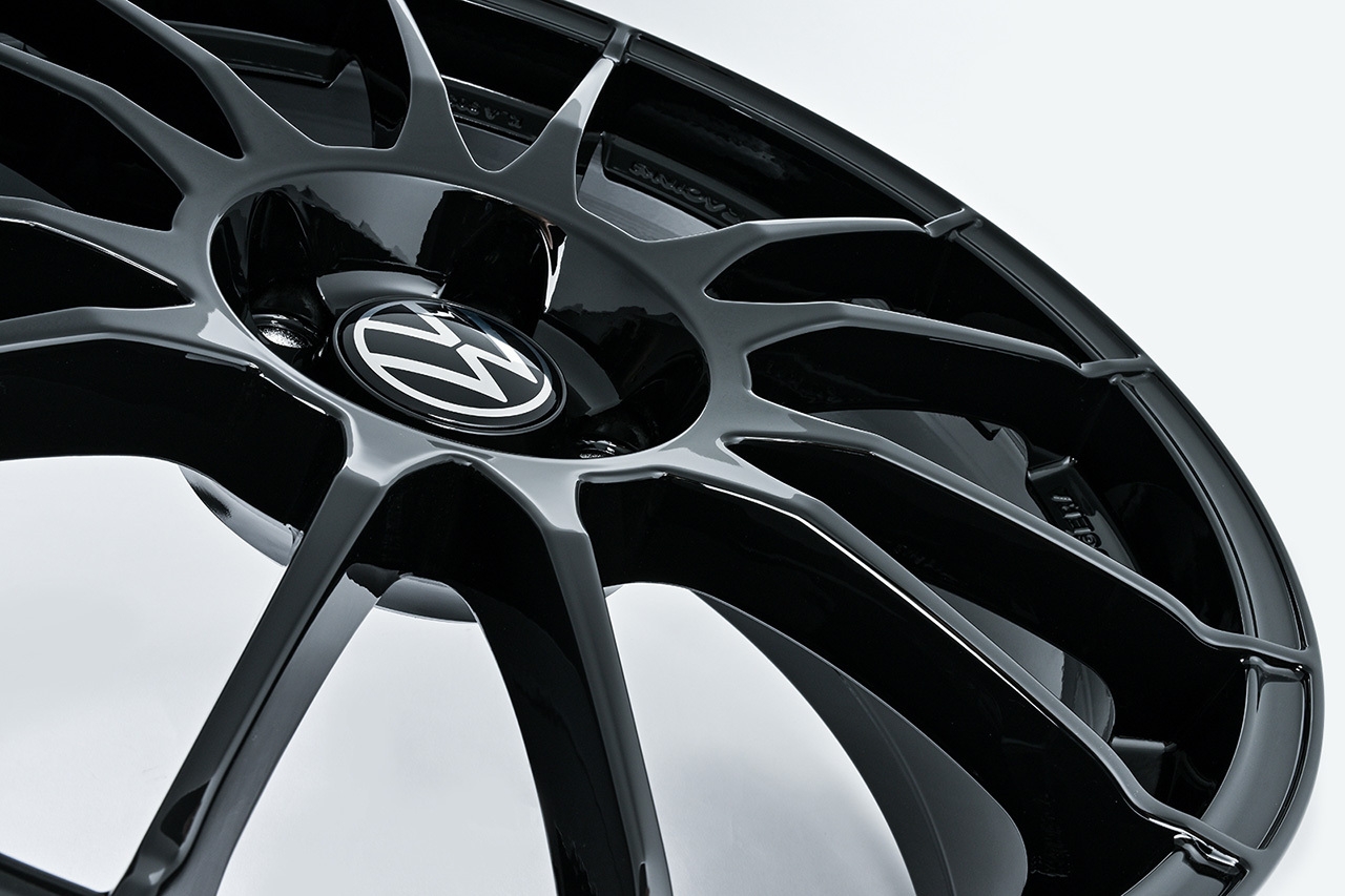 専用色のグロスブラックは、Golf8などの各エクステリアに採用されているグロスブラックとの調和性を意識しており、主張しながらも、まるで純正ホイールかのような佇まいを実現。純正ホイールよりも軽量で、トータル性能が向上している、ハイパフォーマンスモデルとなっています。