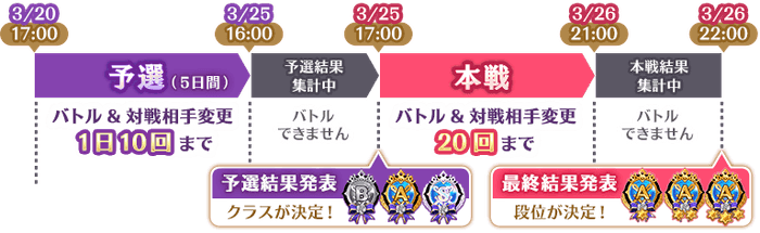 ※本戦では、「ランキングPt」を獲得しても、クラスの変動はありません。