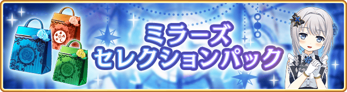 また『ミラーズランキング』の開催を記念して、「ミラーズセレクションパック」「ミラーズビギナーズパック」及び「ミラーズ属性強化パック」の販売を開始いたしました。