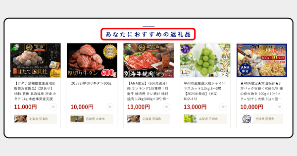 ユーザーの閲覧・購買履歴などのデータを分析し「あなたにおすすめの返礼品」を表示することが可能になりました。